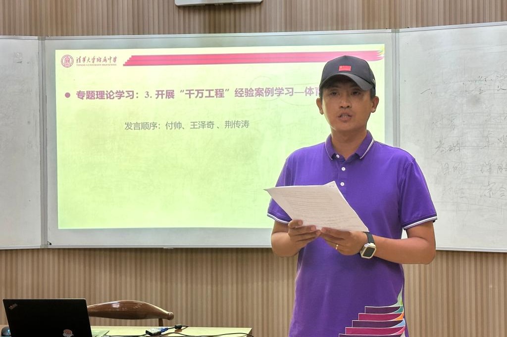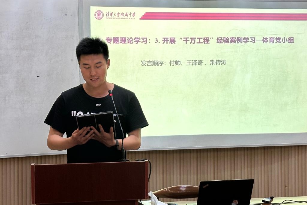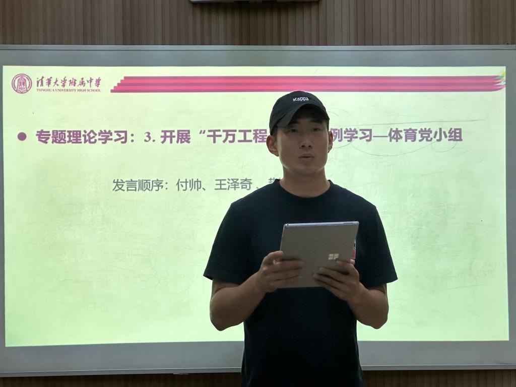 随后 ,来自体育党小组的付帅、王泽奇、荆传涛老师分享了对于学习开展“千万工程”经验案例的体会感悟。付帅老师谈了自己对于“千万工程”的理解以及自己学习习近平总书记在北京育英学校考察讲话的感受。王泽奇老师分享了自己在专题学习后,对教育、科技、人才三者关系的深刻理解,并介绍了自己将理论学习与工作紧密结合起来的做法。荆传涛老师讲述了自己作为体育老师,是如何在教育教学过程中发扬学科特点、全面贯彻党的教育方针、并落实立德树人根本任务。