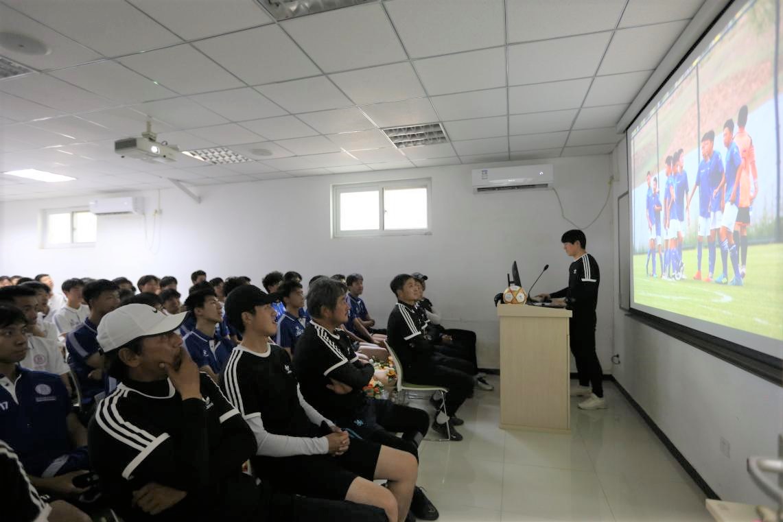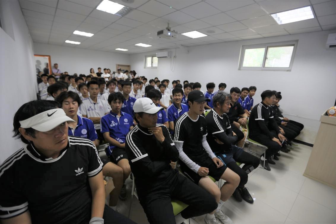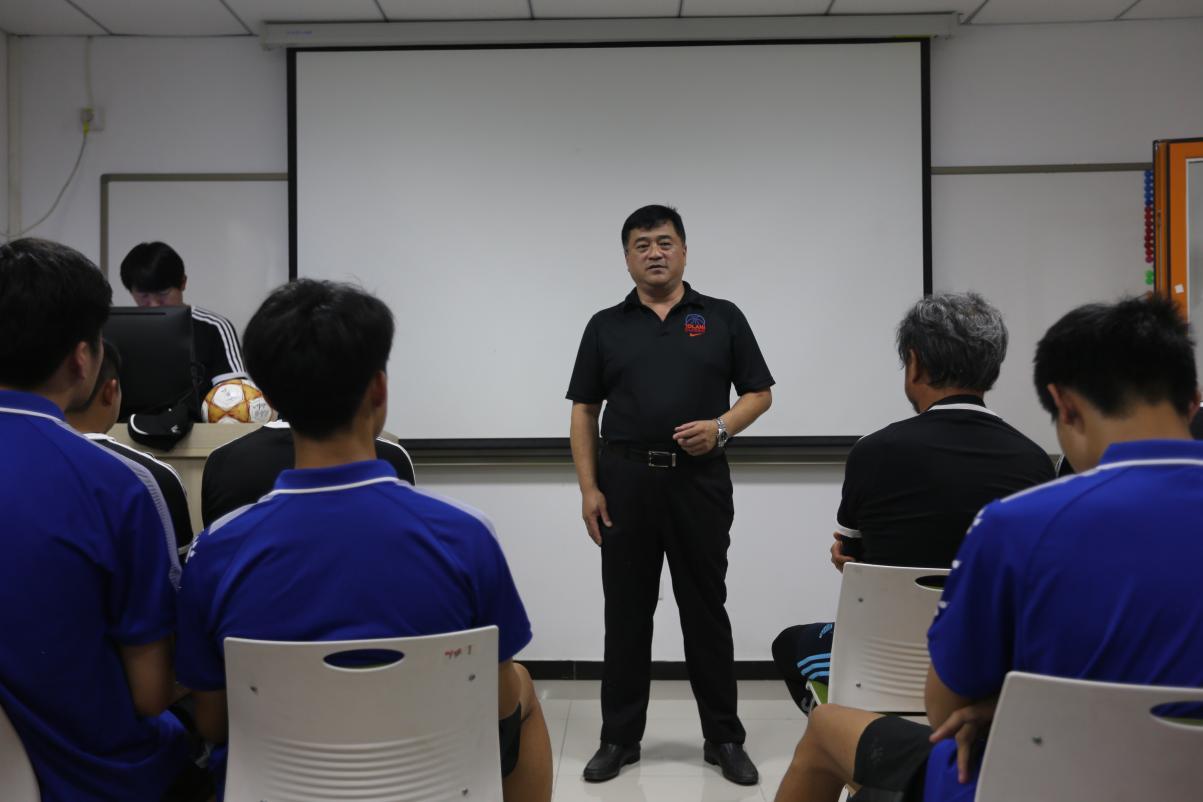 足球队主教练金镇亨发言,他对学生们取得的成绩表示祝贺,感谢学生们六年的付出与坚持,祝愿学生们未来一切顺利。
