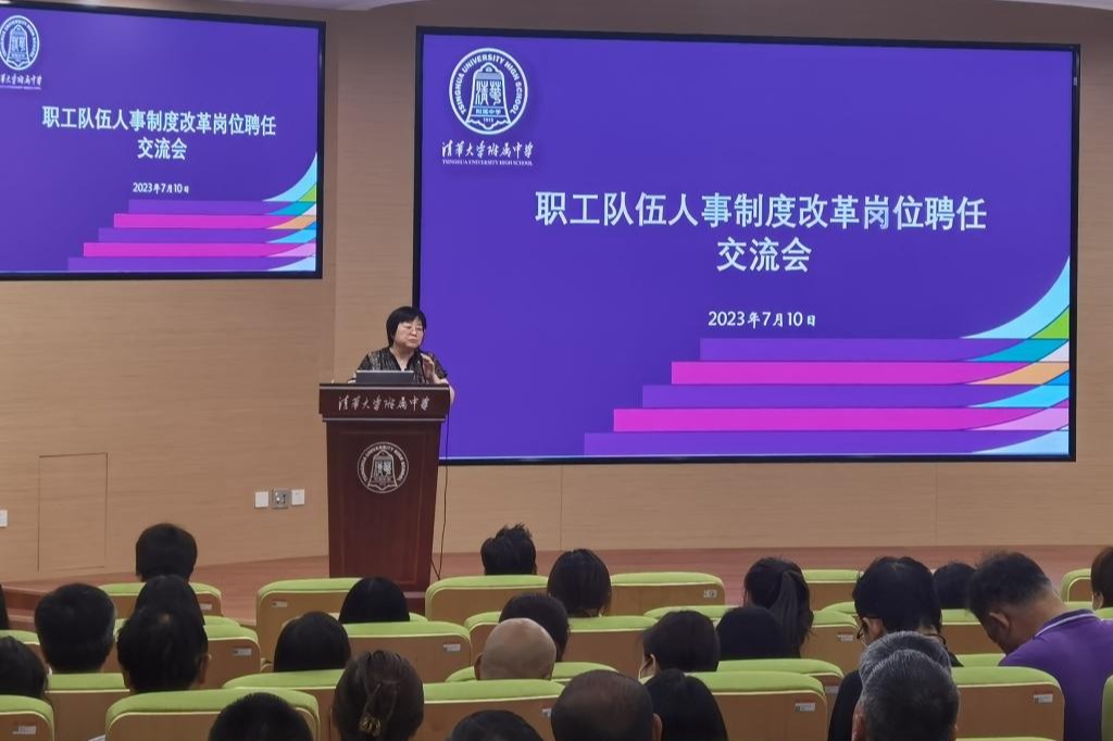 方妍校长讲话。她介绍了澳门博彩在线职工队伍人事制度改革的背景。她强调,职工队伍建设在学校发展中发挥重要作用。学校要建设高素质、专业化、创新型职工队伍,希望各位职工深刻理解学校的育人目标,为培养胸怀天下、体魄健全、内心丰盈、拔尖创新、国际视野的学生发挥积极作用。她鼓励附中职员们在教育强国的时代背景中,与时代发展、与学校发展同频共振。