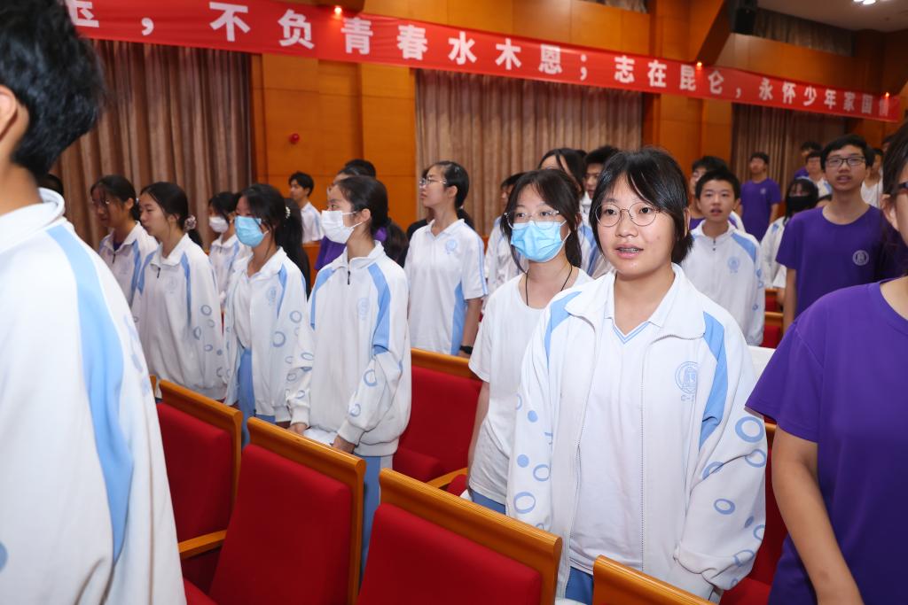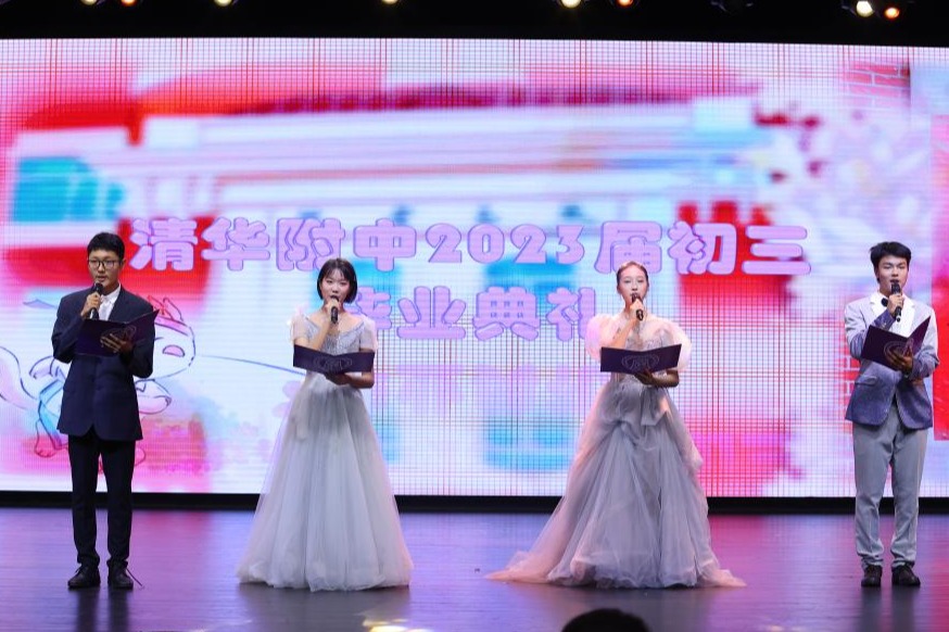 毕业典礼第八项共唱校歌。三年初中时光,难忘西山脚下圆明园旁,白杨丛中一派春光。田径场上龙腾虎跃,教学楼里攻读华章。全体同学跟着熟悉的旋律,共同歌唱校歌,在歌声中怀念初中,感恩母校培养。