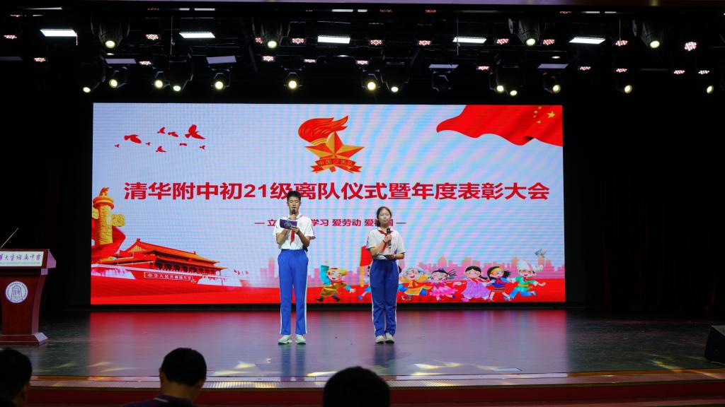 表彰大会后是离队仪式。三位旗手出中国少年先锋队队旗,初21级全体少先队员齐唱《少年先锋队队歌》,在歌声中,同学们回顾意义非凡的少年时代,准备迎接美好的青年时代。