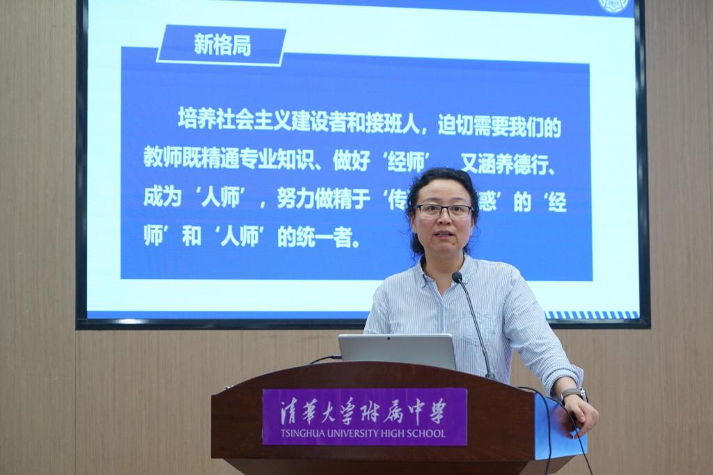 姚佳老师作题为《如何做一名老练的新班主任——浅谈班主任德育工作中的术与道》的讲座。她从自身的经验出发,分享了许多班主任工作中遇到的真实案例。姚老师指出,“德育要从心开始”,要科学专业地爱学生,用适合学生的方式把德育工作做到学生心坎里。