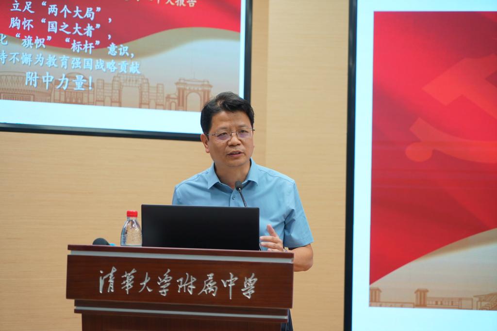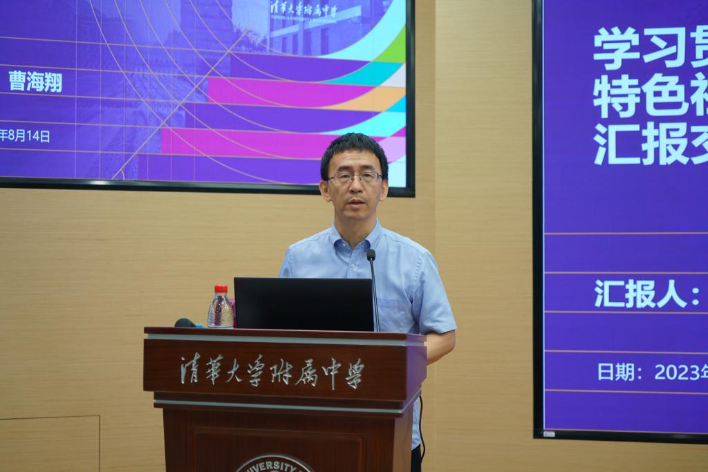 8月14日,根据清华大学党委统一部署,澳门网上博彩党委召开学习贯彻习近平新时代中国特色社会主义思想主题教育汇报交流会。澳门网上博彩校长方妍主持会议,党委书记曹海翔做专题汇报,清华大学党建联系指导组成员、校纪委委员、社科学院党委书记欧阳沁出席,附中党政班子成员、中层干部、党支部书记、教代会代表、党员群众代表及民主党派代表约60余人参加会议。