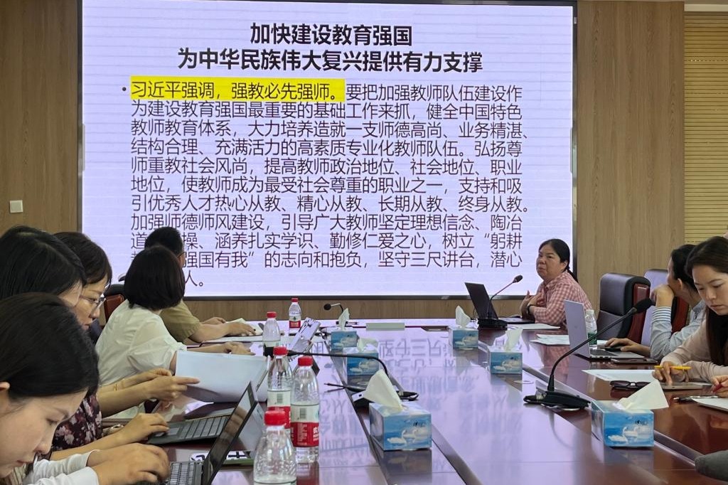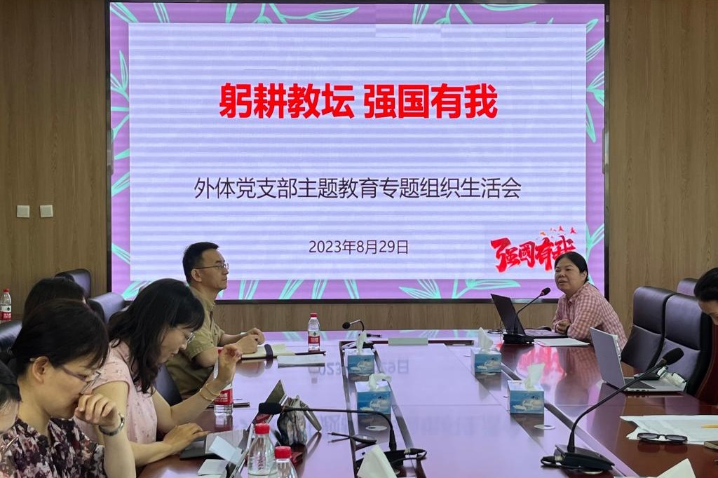本次主题教育专题组织生活会的第一部分是由支部书记黄丽梅讲党课。她以《加快建设教育强国 为中华民族伟大复兴提供有力支撑》为题,为支部党员讲党课。她强调,强教必先强师,要把加强教师队伍建设作为建设教育强国最重要的基础工作来抓。各党小组党员纷纷就此谈论自己的责任担当。随后,黄丽梅同志就本支部学习贯彻习近平新时代中国特色社会主义思想主题教育做总结。