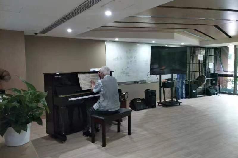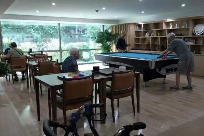 大家饶有兴趣的到各处参观,与那里的老人们聊天攀谈。在医疗中心,老师们看到医生在给老人们检查身体;在宽大的阅览室,老人们在静静的看书读报;健身房里,老人在打兵乓球、下围棋,欢声笑语不绝于耳,钢琴旁一名老人弹奏着优美的名曲,走廊墙壁上贴满了老人们的绘画及手工作品。一张娱乐健身活动时间表非常醒目,上面根据老人的身体特点设置了数十种活动,内容丰富多彩,充分体现了这里的老人们健康又富有活力的生活。从房间坐便旁的把手,老人漫步坡道的设计等等细节上,老师们更是看到了养老社区的细心与温暖。