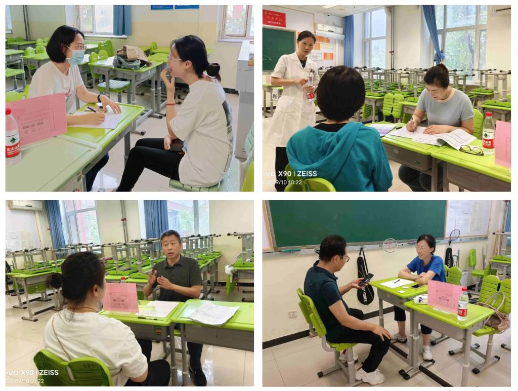 在义诊活动开始之前,学校工会、后勤保障部、校家委会和家长志愿者就早早来到学校,开始布置“临时诊室”,制做导引指示牌,便于教职工更高效就诊。