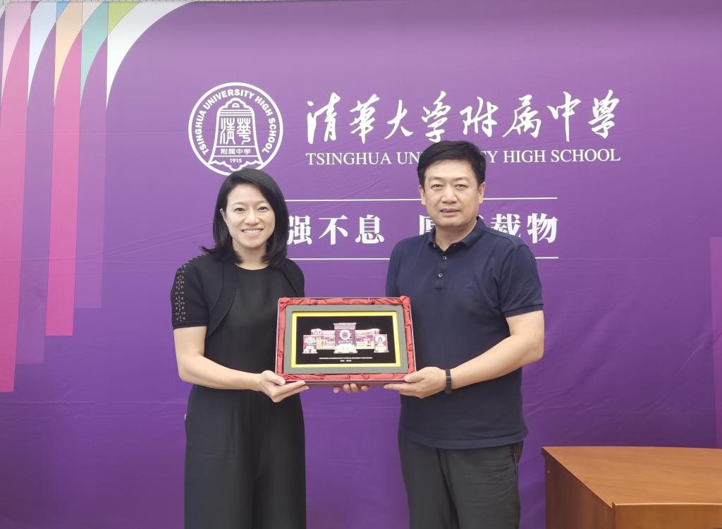 白雪峰副校长(右一)向香港北山堂基金会赠送澳门网上博彩百年校庆徽章