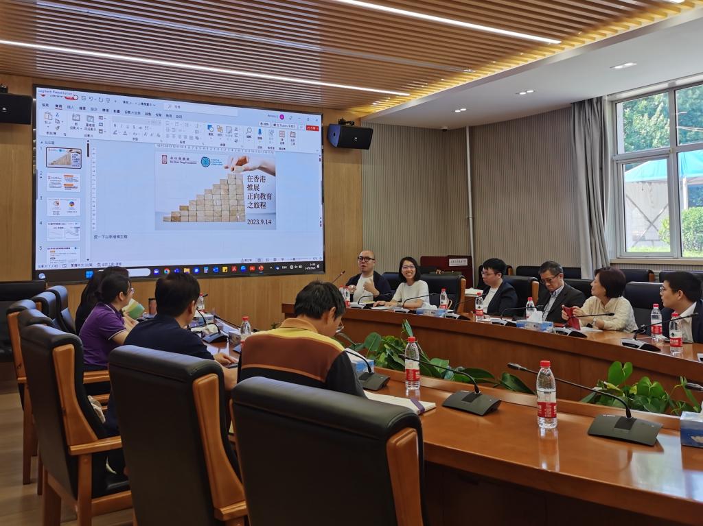 2023年9月14日下午,香港北山堂基金会一行12位老师到访澳门网上博彩,并围绕积极心理教育进行了交流,澳门网上博彩副校长白雪峰、学生发展中心主任王田、李书霞,心理办公室负责人陈明秋及全体心理教师参加此次交流活动。学生发展中心主任王田主持会议。