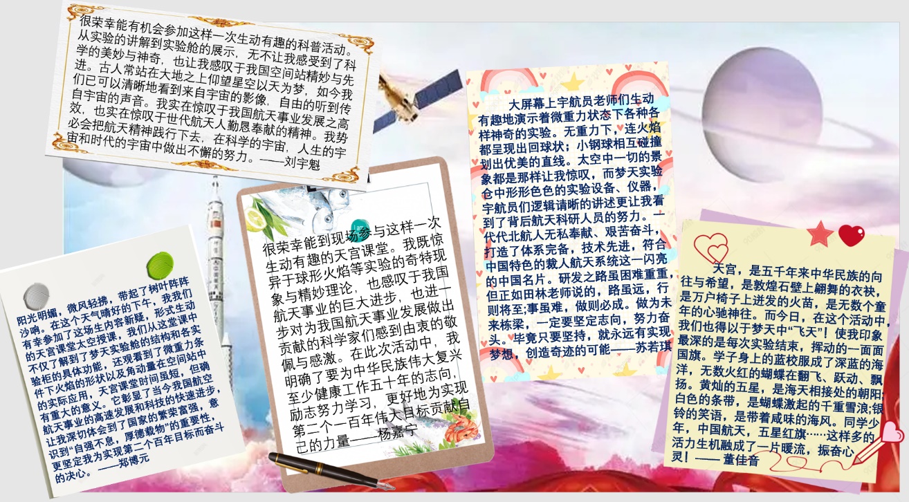 同学们感受到了航天人艰苦奋斗、追逐梦想的品格,深受鼓舞,纷纷立下志向:不负青春,努力学习,传承载人航天精神,为下一个百年的荣耀与辉煌接续奋斗!