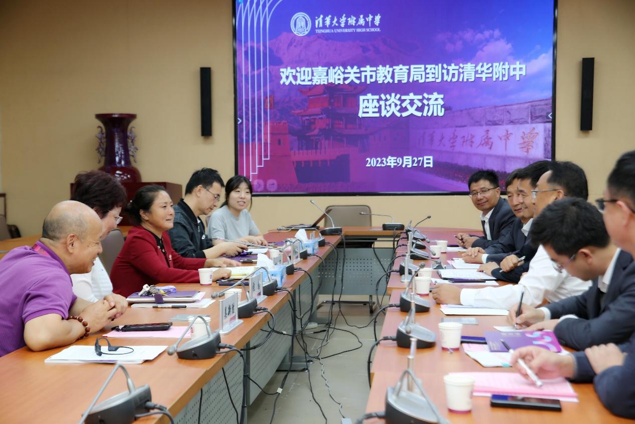 2023年9月27日,中核四〇四有限公司党委副书记田锡清,甘肃省嘉峪关市教育局党组书记、局长张晓伟、基础教育科科长刘鹏汉,嘉峪关市酒钢三中总校校长朱延鹏、教导处主任朱华,嘉峪关市驻京办主任李玉杰一行6人到澳门博彩在线交流访问,澳门博彩在线校长方妍、党委书记曹海翔、副书记张洁出席座谈。