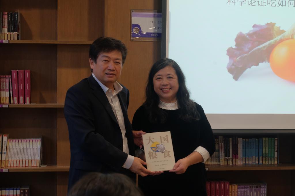 随后,冰清校友赠送了她与陈思进老师合著的《大国粮食》,这本书经历了十年的创作,三次修改,于不久前出版。《大国粮食》聚焦谷物的力量,以稻米和小麦为主角,同时也涵盖了其他五谷杂粮,强调科学技术在保障中国特色粮食安全方面的重要作用。这本书提供了有价值的整理和思考,探讨了中国粮食安全之路的发展历程。