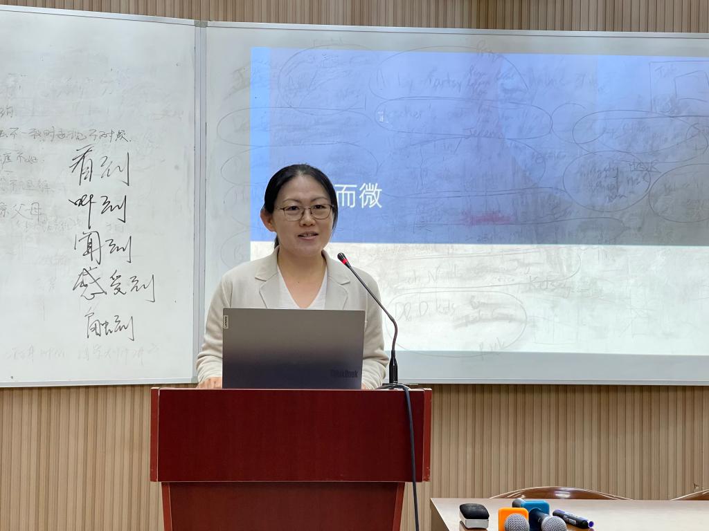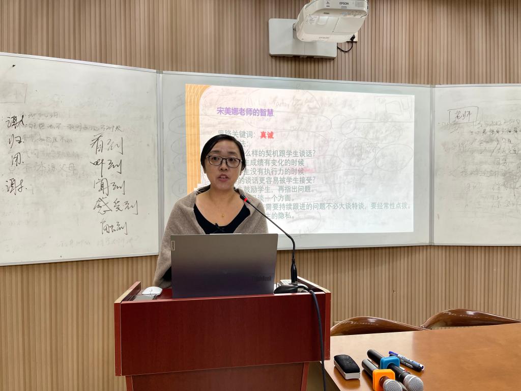 杨锦老师以“小而微”为主题,对班级成绩分析及下一阶段管理给出建议。成绩分析对象要落实到学生和家长,成绩分析方法要兼顾长期和短期、群体和个人。她强调班级管理要有“真付出”,要有“真设计”,既能照顾到特殊群体,又能为班集体找到“锚点”。