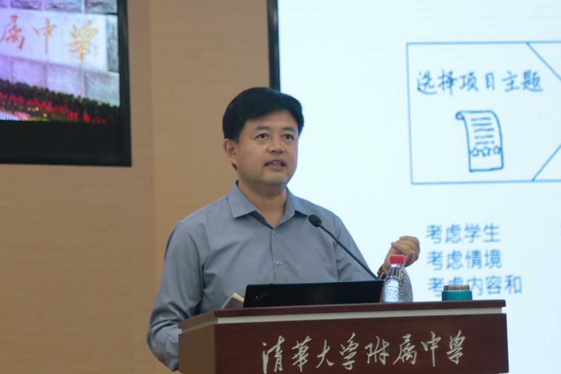 黄嘉莉教授进行了题为《中学项目式学习的实践策略》的讲座。她从为什么要做项目式学习,什么是项目式学习以及项目式学习的实施策略三个方面切入。提出实现高质量“项目式学习”要包含知识度、真实度、感知度、参与度、实践度、协作度的“六度”特征。实现项目式学习要包含选择项目主题、确立学习目标、拟定驱动问题、设计实施方案和设计评价方案五大要素。在讲座中,黄教授列举了一系列的中学项目式案例,与老师们互动探讨,现场气氛活跃,老师们积极提出自己的见解和想法。
