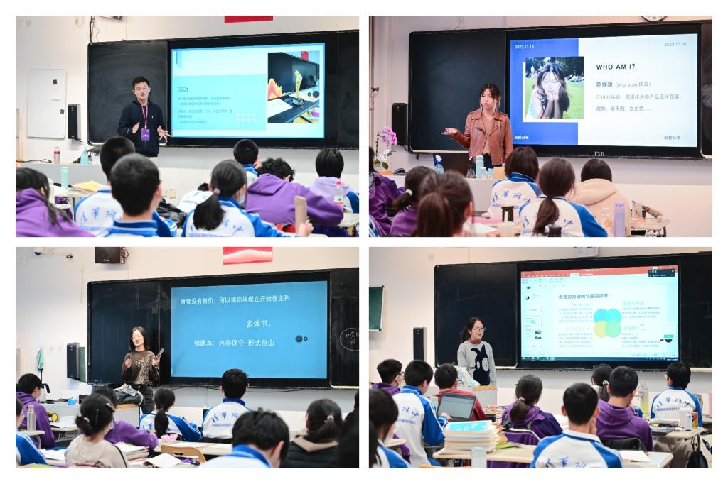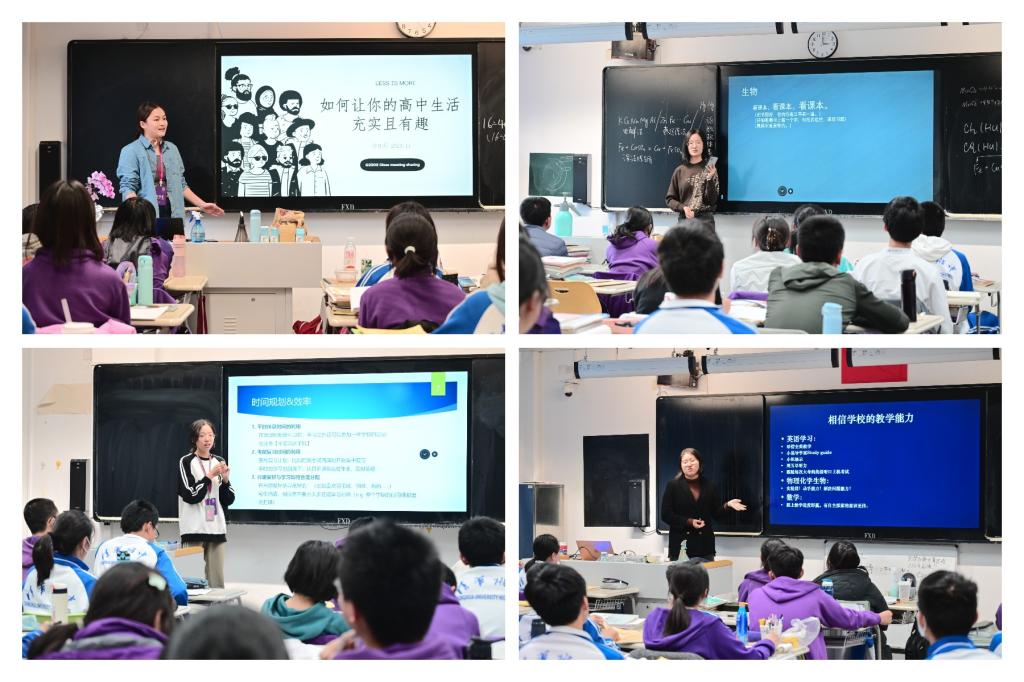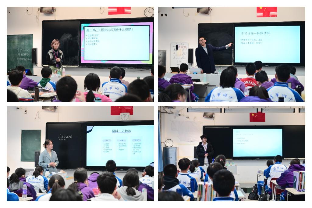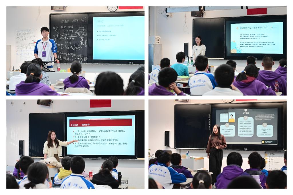 活动在高一学部的各班教室里举行,每个班级充满了热烈的氛围。学长们回到了他们曾经学习的地方,与新一届的高一同学们分享他们在高中学习和生活中的经验。这些学长们不仅在学业上取得了显著的成绩,而且在各个领域都有着丰富的经历,为高一同学们提供了宝贵的借鉴和启示。