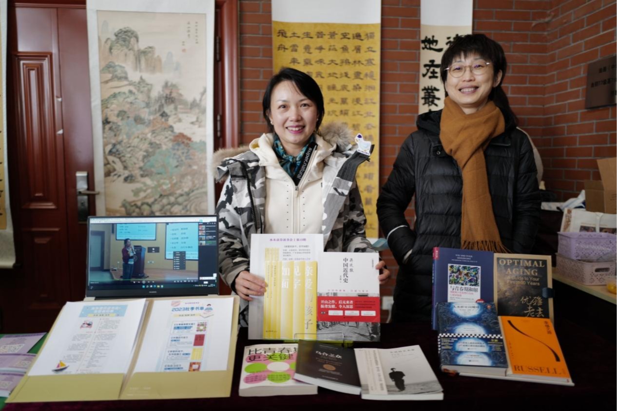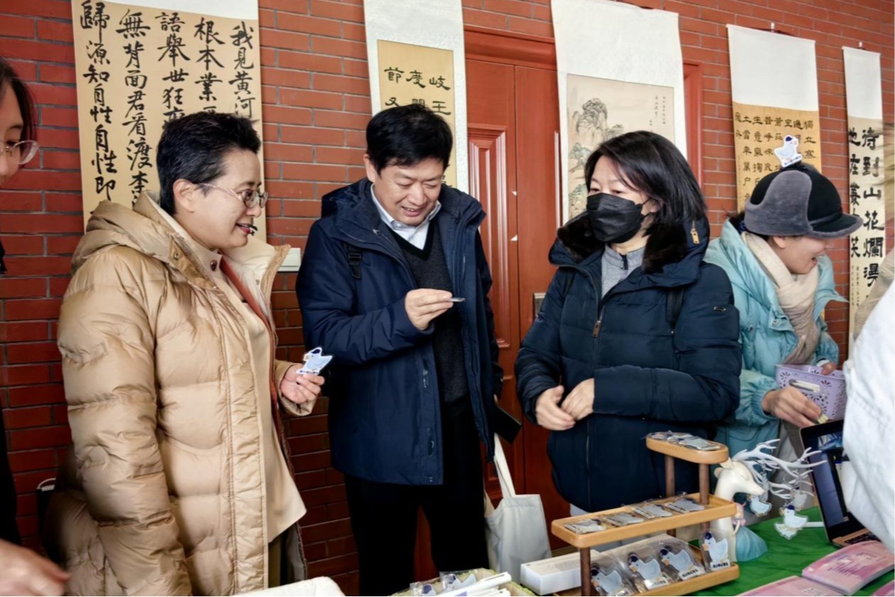 白雪峰副校长在校家委会精心准备的家校共育文创展台前驻足