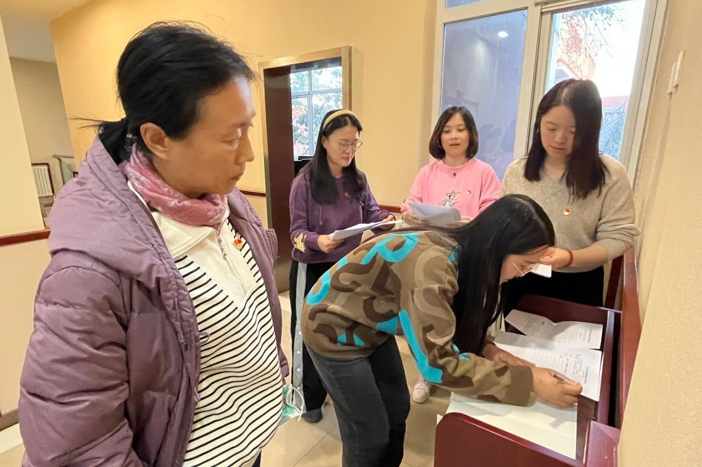 表决通过后,总监票人刘海燕主持选举。监票人组织发放选票,全体党员进行投票。投票完成后,计票人收回选票并进行统计,监票人进行监督。