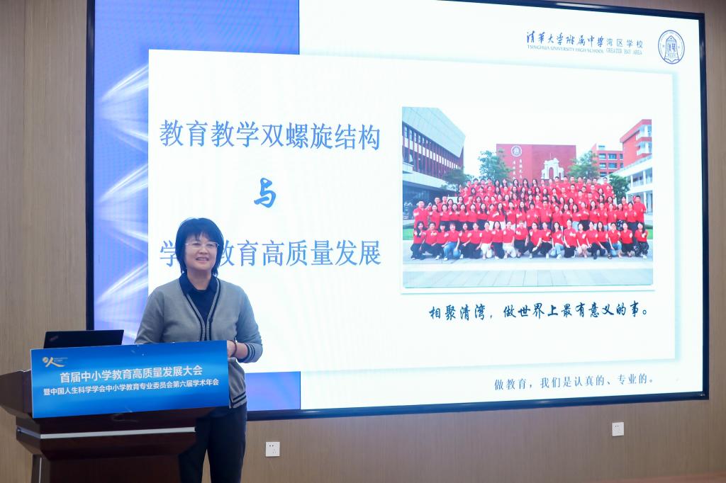 澳门网上博彩湾区学校执行校长程惠云,以“教育教学双螺旋机制保障学校教育高质量发展”为题就学校在教育教学方面取得的成绩和与会者进行分享。