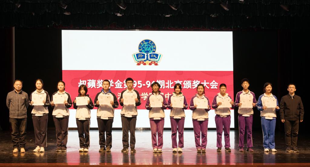 本次大会由北京叔蘋奖学金得奖同学会刘燕南副会长主持,附中学子们通过聆听宋鸿冬副会长宣读的顾家麒主席讲话、北京叔蘋得奖同学会会长王晓峰的讲话,深刻感受到叔蘋奖学金不仅仅是对品学兼优学生的一种荣誉,更是奖学金宗旨“得诸社会,还诸社会”担当精神的写照。随后,主管奖学金工作副会长孙俊老师介绍95-96期奖学金评定情况,并宣读了获奖学生名单,王晓峰会长与曹海翔书记为附中获奖学生颁发证书,并合影留念。