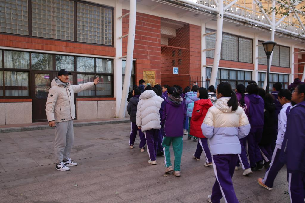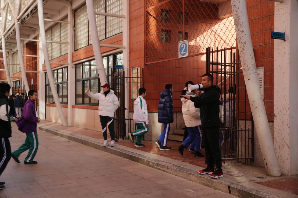 王田主任向初中学生强调疏散演习注意事项