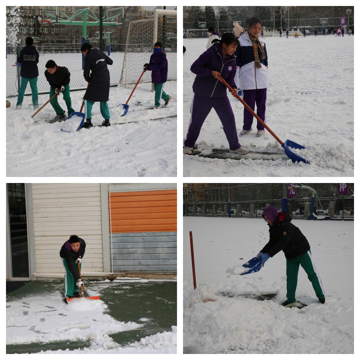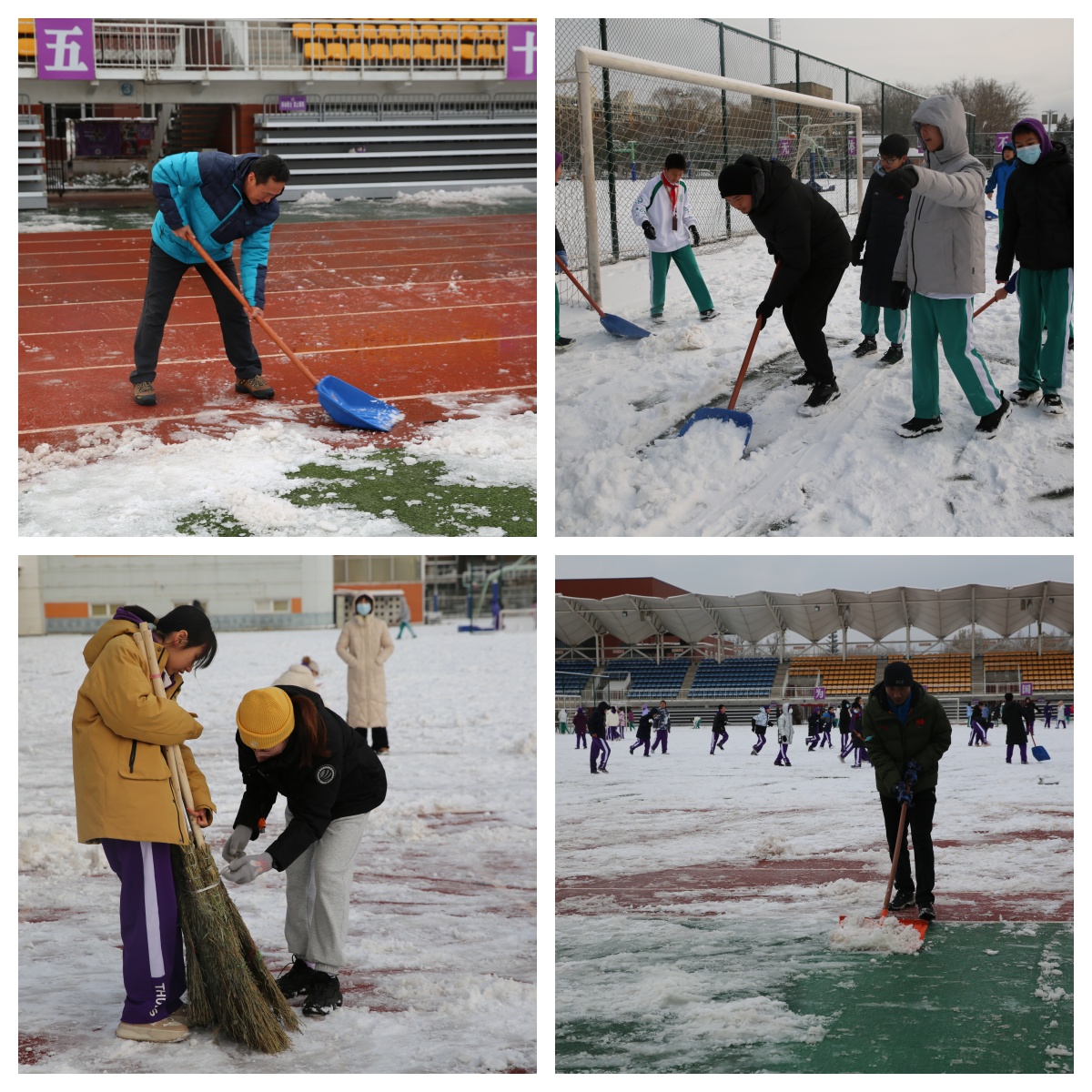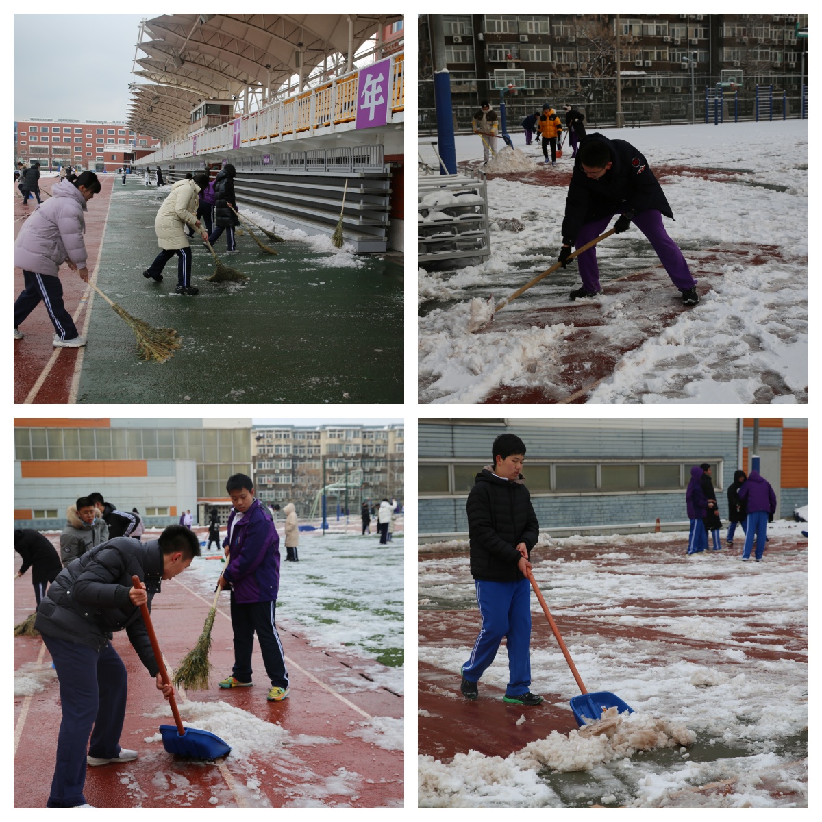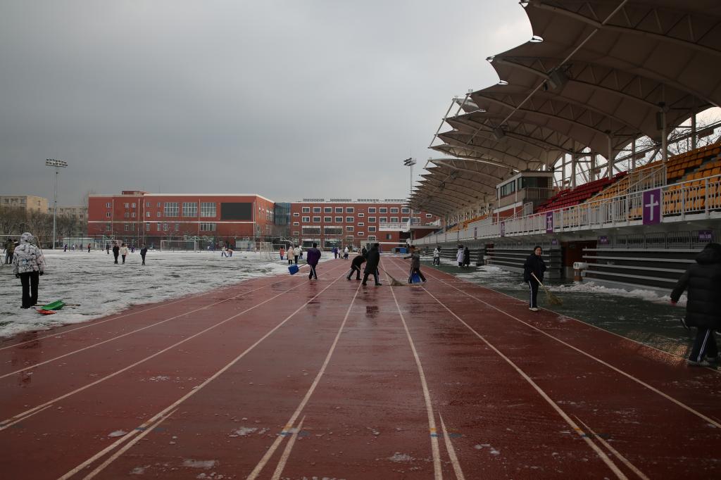 操场积雪逐渐被清扫干净