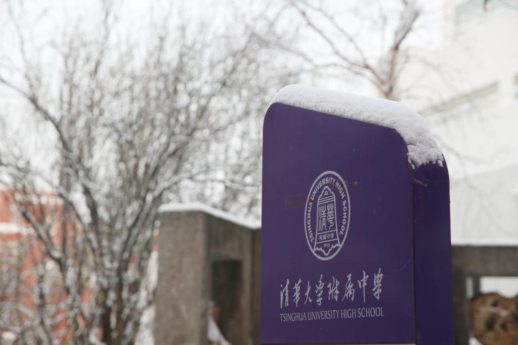 初雪后,校园里银装素裹