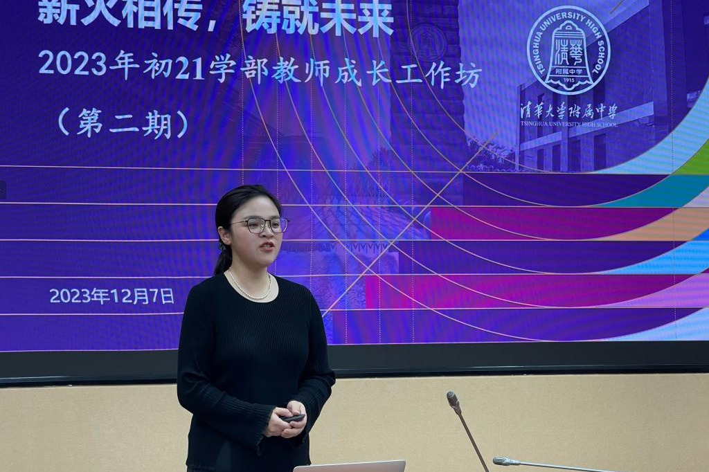 李冰清老师致开场词,她温馨地回顾了初21学部全体教师尤其是青年教师的昂扬姿态和美好瞬间,也指出青年教师成长过程中存在的迷茫和困惑。