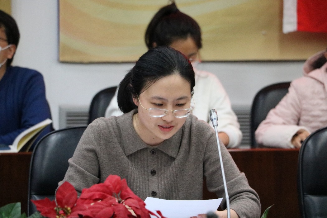支部书记武晓青宣布会议开始。首先,预备党员靳姝菲同志汇报了个人在预备期的学习和工作表现及问题不足的改进情况。
