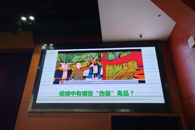 播放改编的动画片《西游记》片段,为同学们生动介绍了各类伪装毒品