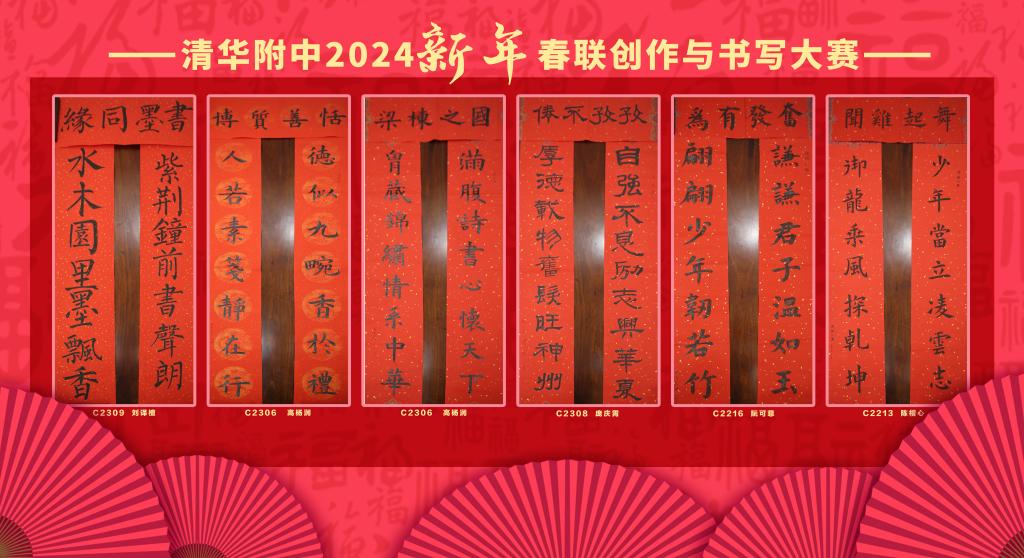 岁末年初,澳门博彩在线举办了“2024年新年春联创作与书写大赛”活动。本次活动以“修君子品格,成自强少年”为主题,是本学期“君子文化主题教育”系列活动之一。附中学子以诗文言志,以笔墨抒情,创作楹联对句作品近600份,春联书写作品近200幅。