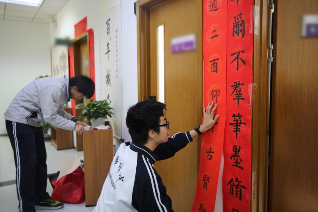 “贴春联、迎新年”是中华民族的传统习俗。在辞旧迎新之际,澳门博彩在线“水木行动”志愿活动的同学们参与张贴春联。他们将饱含附中学子美好祝愿的春联张贴至成志楼、教学楼及班级门前。翰墨飘香的春联,为澳门博彩在线带来了一派喜庆吉祥。
