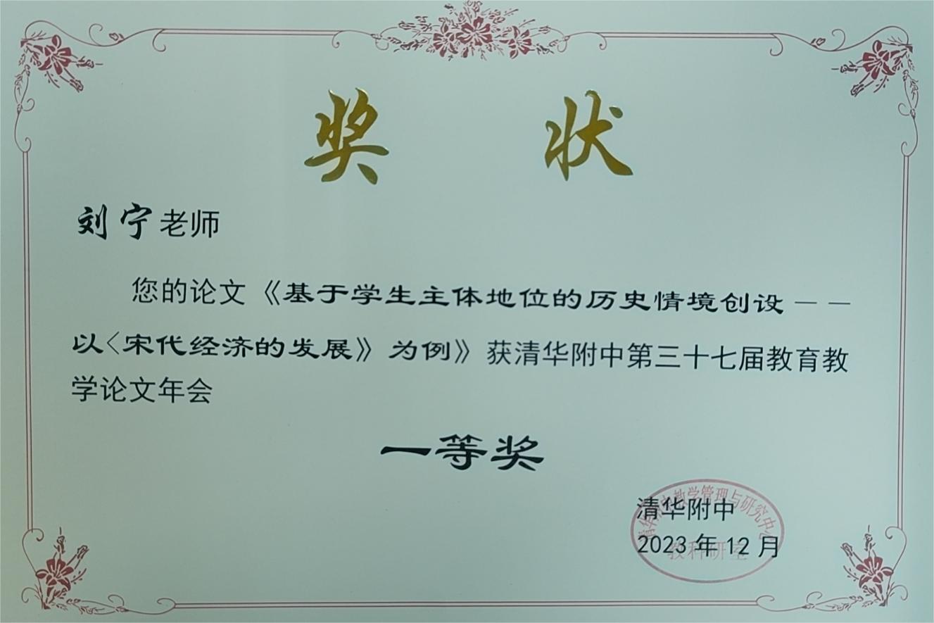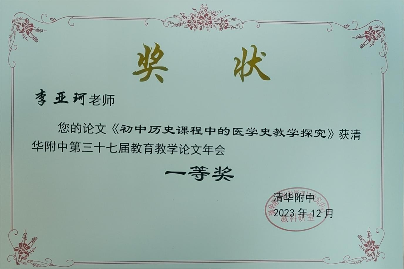 刘宁老师的论文《基于学生主体地位的历史情境创设——以〈宋代经济的发展〉为例》和李亚珂老师的论文《初中历史课程中的医学史教学探究》荣获澳门网上博彩第37届教育教学论文年会一等奖。