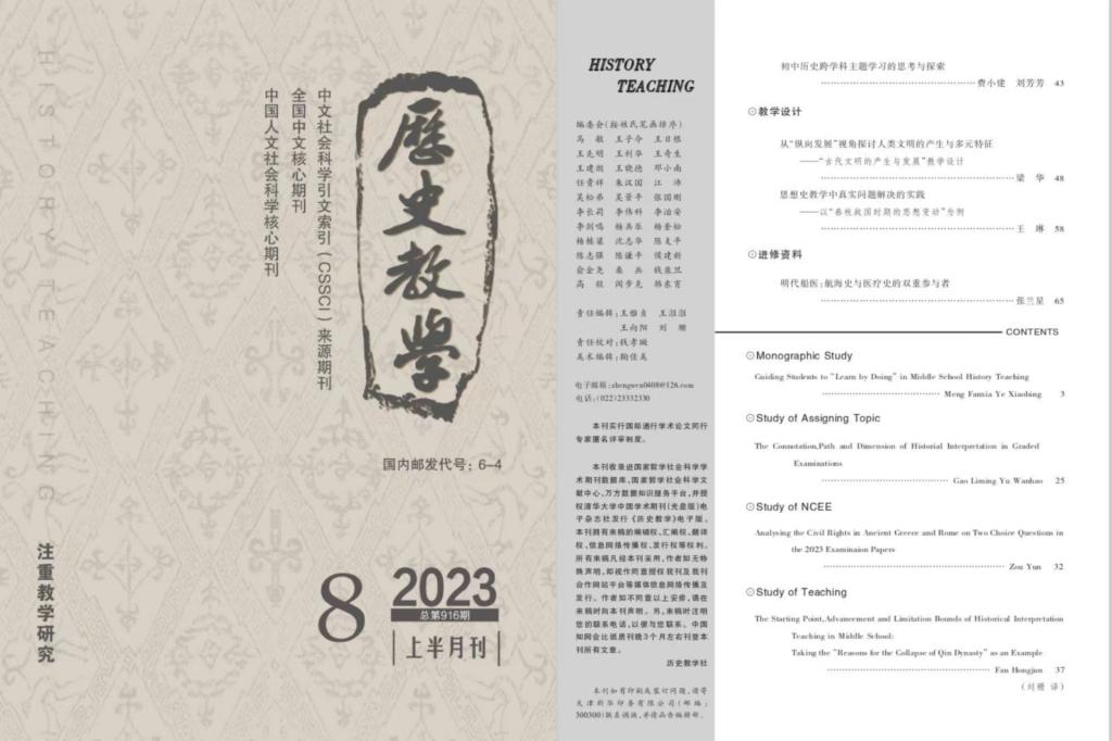 费小建老师的论文《初中历史跨学科主题学习的思考与探索》发表于《历史教学》总第916期。