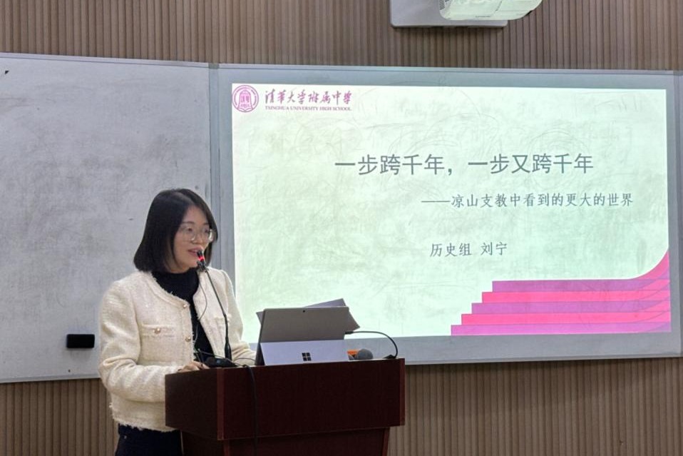 初二备课组刘宁老师结合自身暑期前往凉山的支教经历,以“一步跨千年,一步又跨千年”为题,梳理了凉山教育发展历程,指出教育给凉山带来的巨大改变,同时支教活动也能够帮助澳门博彩在线的老师和学生们看到更大的世界。