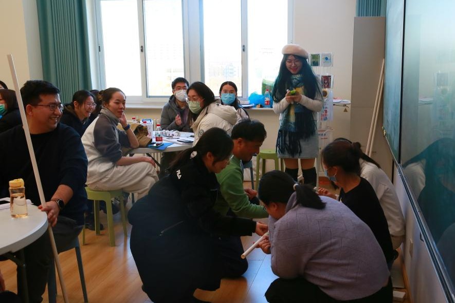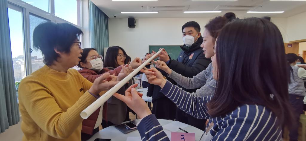 开场的团建活动齐眉棍让教师们快速热身,通过共同合作举起一根细棍,强化了小组的团队凝聚力、专注度和协作力。案例研讨环节更是引起了教师们的极大兴趣。教师们以小组为单位,对随机抽到的案例进行了深入的分析和讨论。每个案例都紧贴教师的实际工作情境,如如何理解和处理学生的情绪问题、如何与家长有效沟通、如何团队协作以及如何处理紧急危机情况等。