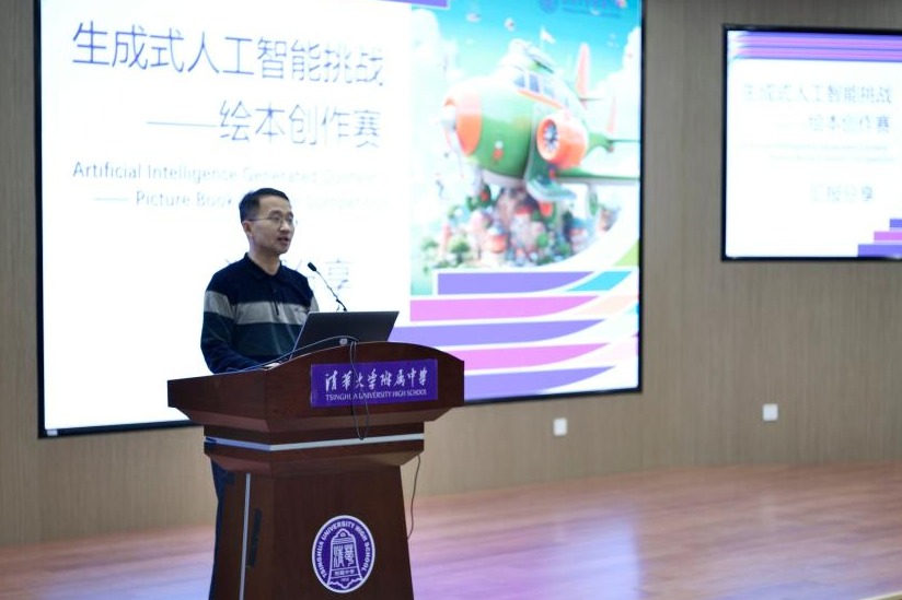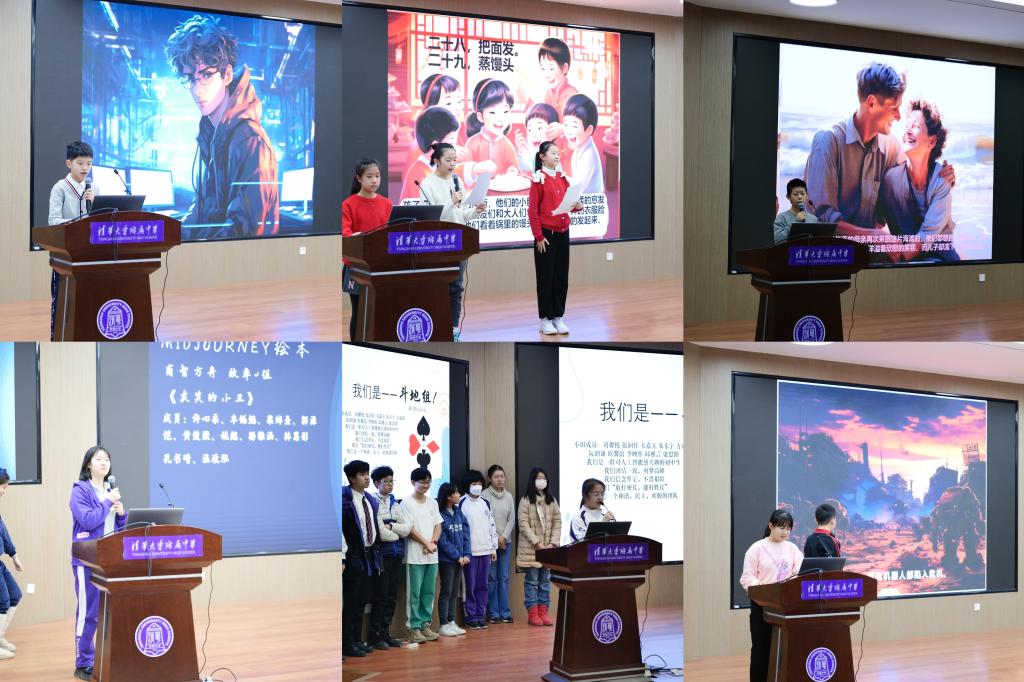 “甫智方舟”科技冬令营的全体学生与海淀区人工智能实验班的部分学生携手参加了生成式人工智能挑战赛。学生们通过深度思考和亲自动手实验,创作了一系列内容丰富、视觉酷炫的人工智能生成式作品。16组学生在B106展示了他们的创意之作,并进行了精彩的汇报分享。