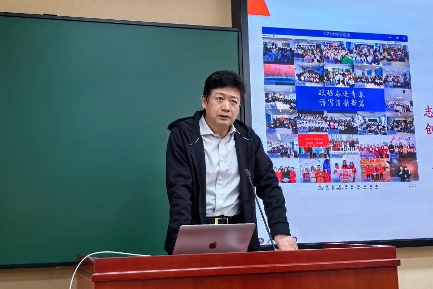 初21学部主任李冰清对初21学部工作进行阶段总结和规划。李老师总结,初21学部明确目标、统一思想,劲往一处使;寒假期间各班组织入户家访、开展综合实践活动,也获得了各部门支持保障,全体教师为学部工作全身心投入、敢于付出、重视落实、紧抓效率。她提出,班主任和任课教师在新学期要走稳新年第一步,重视每个时间节点,上好开学第一课,把关学习规范、状态和目标。最后,李老师对初21学部教师的付出表示真诚的感谢。