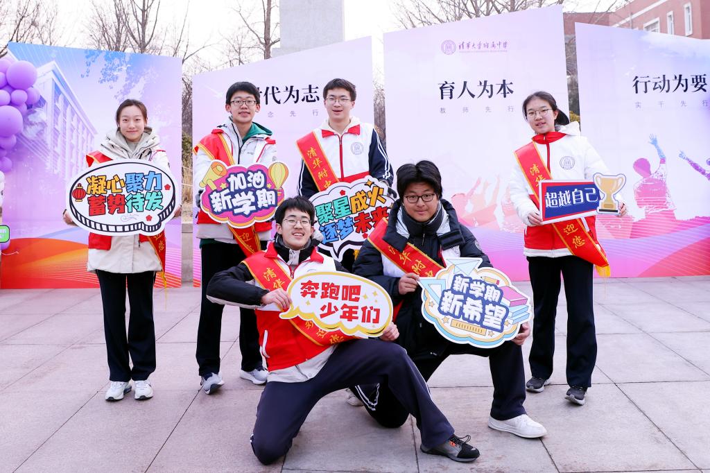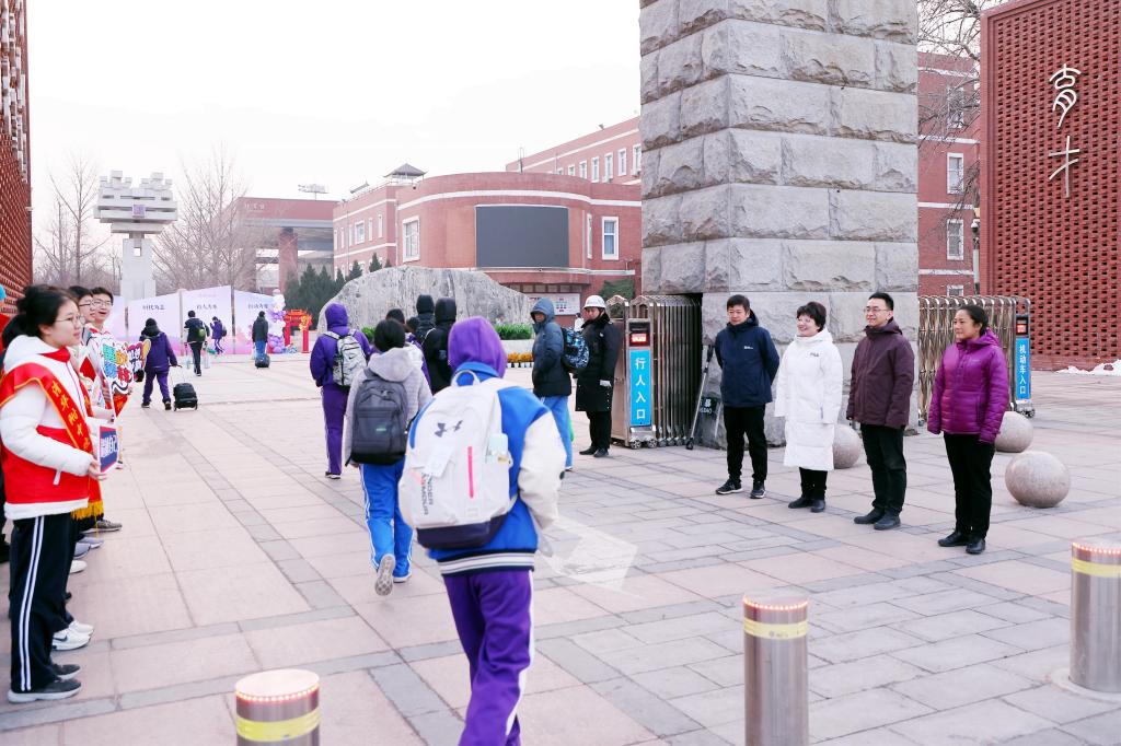 附中校领导、志愿者喜迎同学们返校