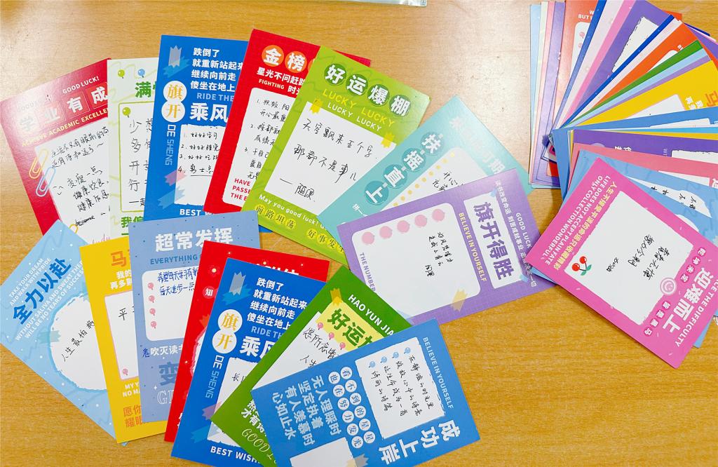 高一14班同学们在专门设计的寄语卡片上留下新学期寄语