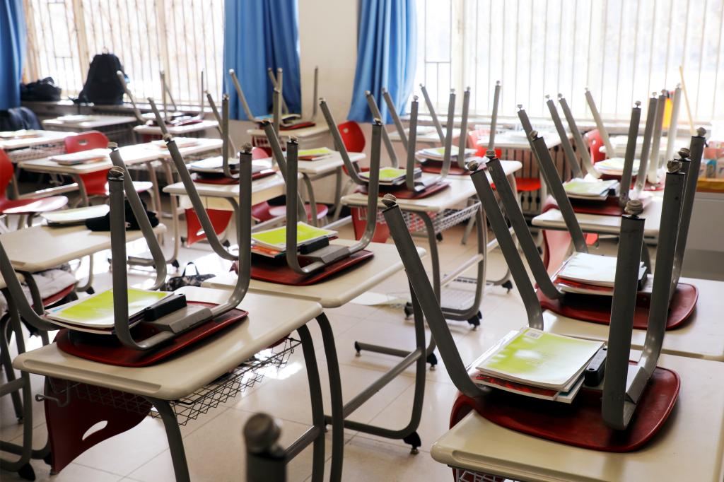 桌椅上提前分发并码放整齐的教材