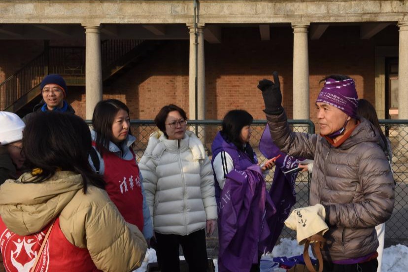 2月24日早上八点,志愿者们已经到达清华大学西大操场集合点。大家笑脸盈盈、跃跃欲试,在短暂的碰头分工会议后,由跑团团长初23张雨佳爸爸组织认领联络用对讲机、分发志愿者马甲、讲解“2024”跑图工作点及工作职责。