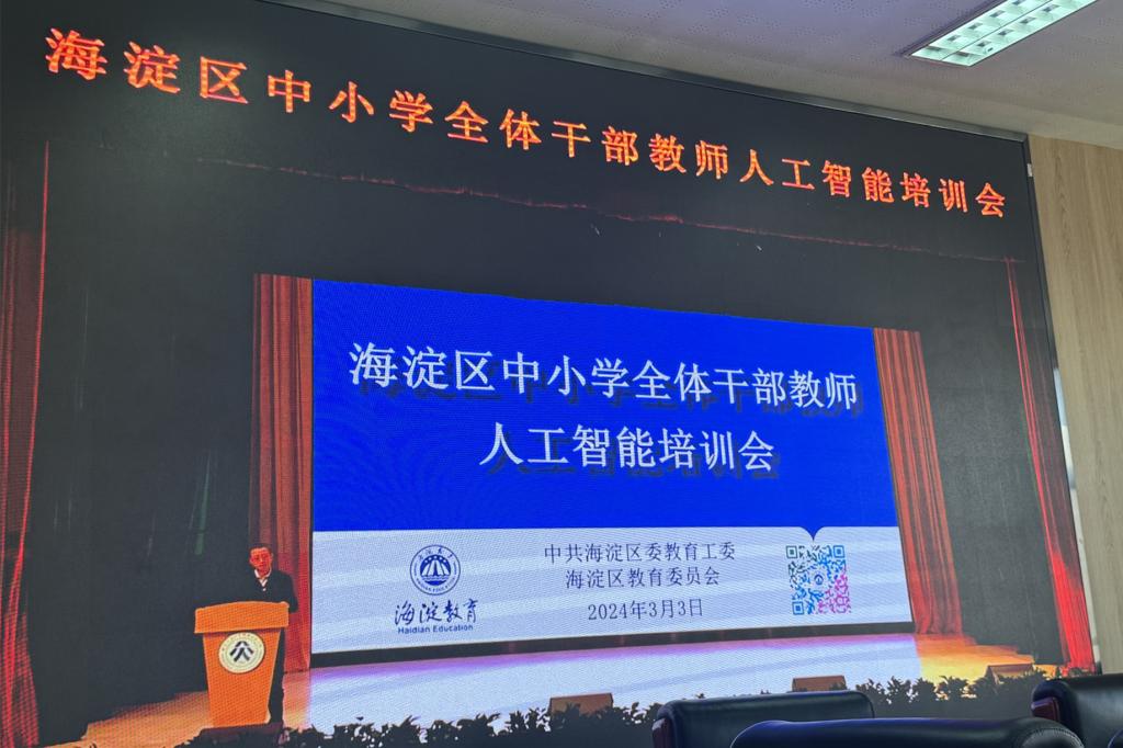 3月3日上午,海淀区举办人工智能培训会,展开对教育领域的影响、优势和挑战等方面的介绍,提升中小学干部教师对人工智能方面的认知和实践水平。海淀区教育委员会主任杜荣贞主持大会并提出,在人工智能时代下海淀区教师应积极投入人工智能相关内容的学习和研讨,面向海淀区全体教师举办本次大会。北京智源人工智能研究院院长王仲远作专题报告,从人工智能的起源、深度学习算法迭代、人工智能发展的前沿讯息、人工智能在教育教学中的应用等几方面展开介绍。海淀区区长李俊杰作大会总结发言,他鼓励海淀教师在人工智能大背景下敢于挑战、勇担责任,学好人工智能、用好人工智能,为培养具有家国情怀的人工智能顶尖人才作出积极贡献。