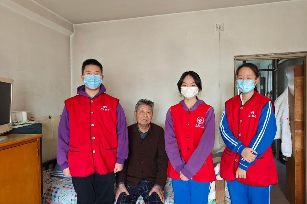 高一3班杨芊雪、李泠然,初二2班谭米然同学参加雨花敬老院组织的敬老公益服务活动