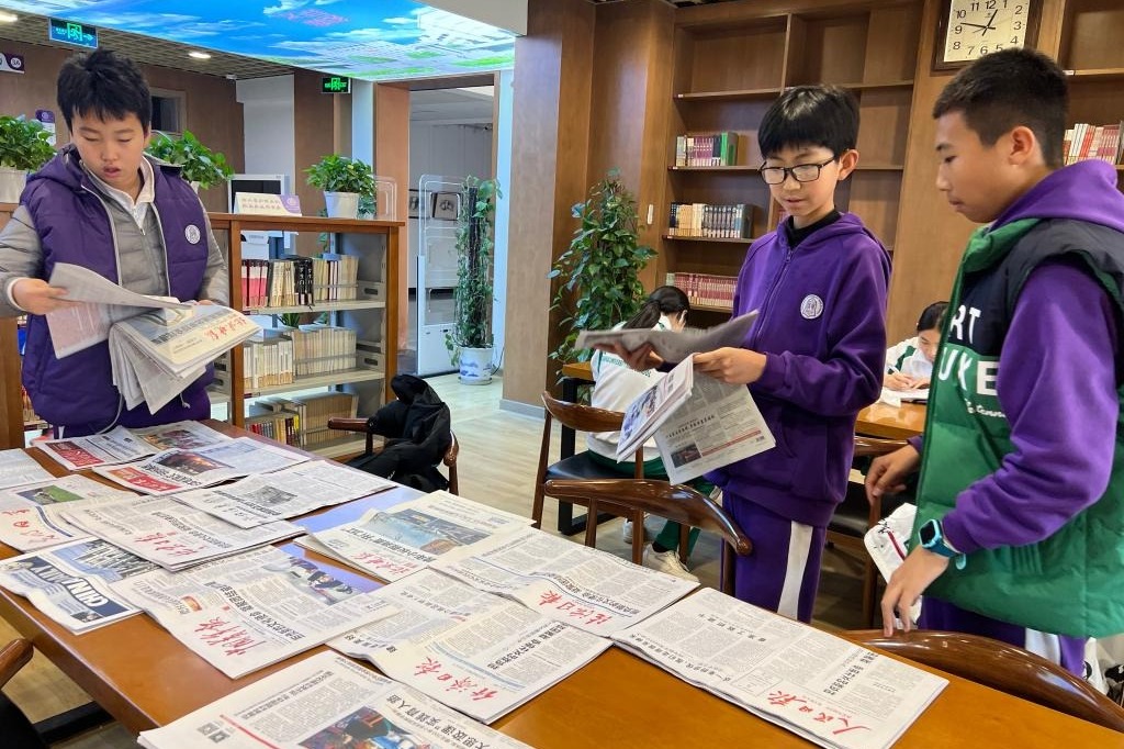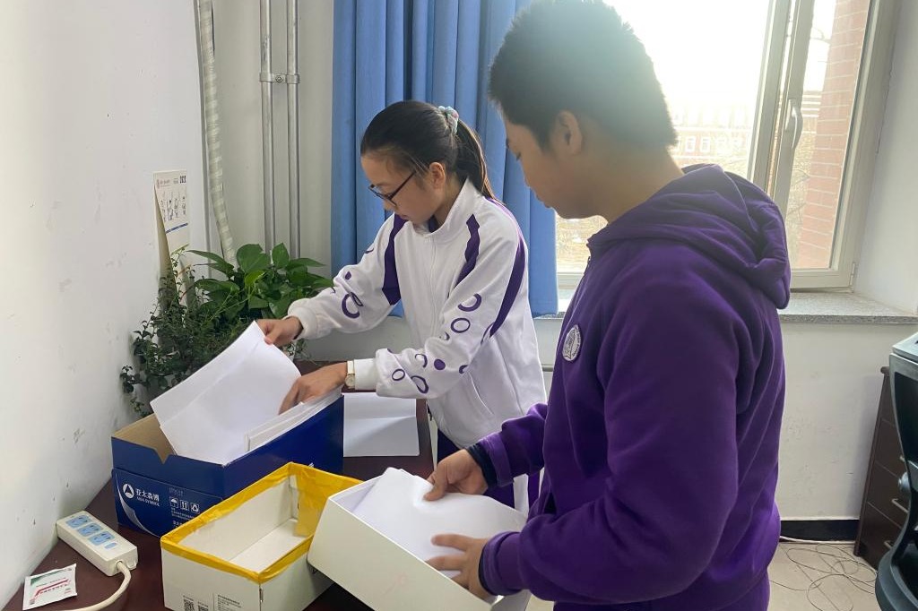 初一8班开展“废纸森林”活动,将废纸装订成册循环使用