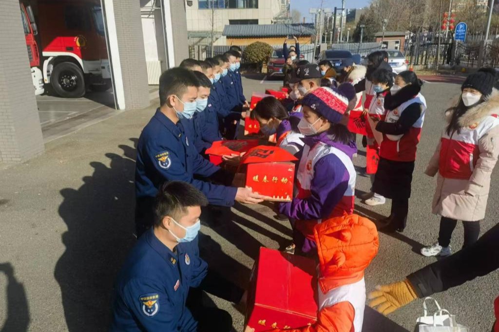 初二11班杨洛尘同学主动前往慰问春节期间坚守岗位的消防员战士