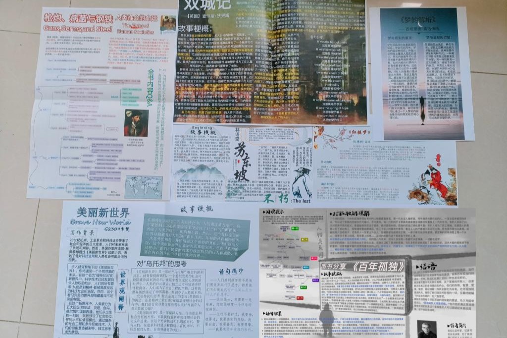 高一9班志愿者为学校图书馆绘制图书推荐公益海报