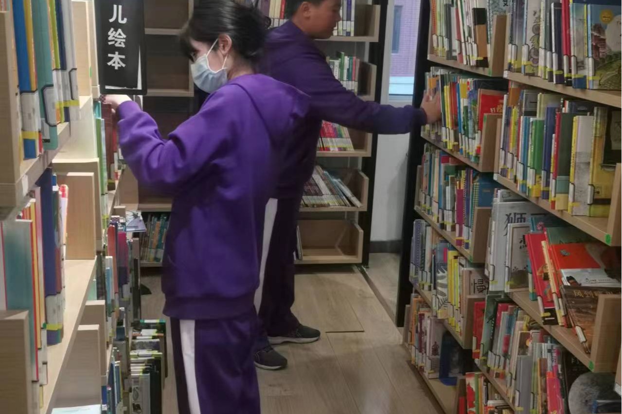 初一13班协助图书馆老师整理报刊杂志