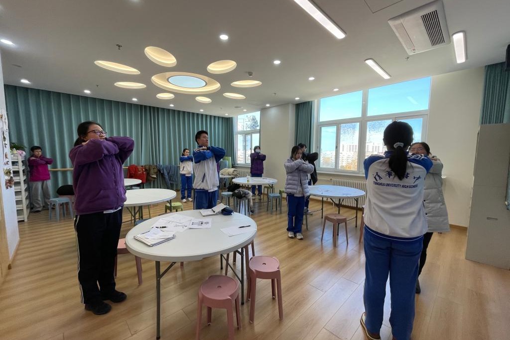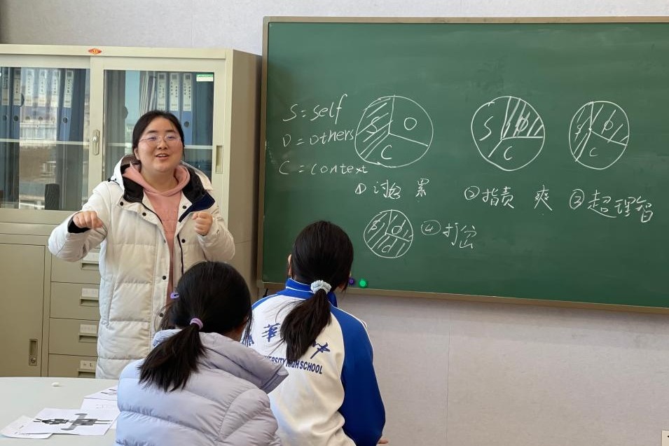 学生通过肢体动作感受沟通模型