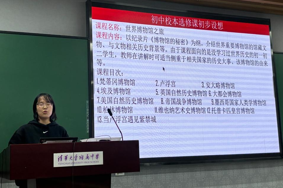 李帅老师介绍初中校本课程《博物寰宇》,旨在带领学生进入世界博物馆之旅。课程以纪录片《博物馆的秘密》为纲,介绍世界重要博物馆由来、馆藏文物、与文物相关历史背景等。
