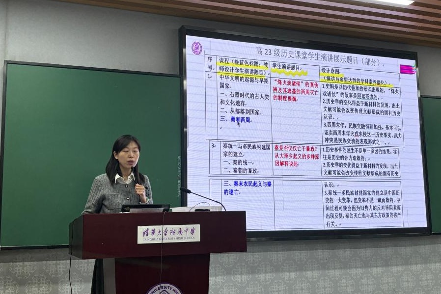 宋薇老师介绍高中校本课程《谘经诹史历史文化大讲堂》,学生在教师的指导下阅读专业的书籍,通过对相关问题的交流和讨论,拓展学生的历史学习广度和深度。