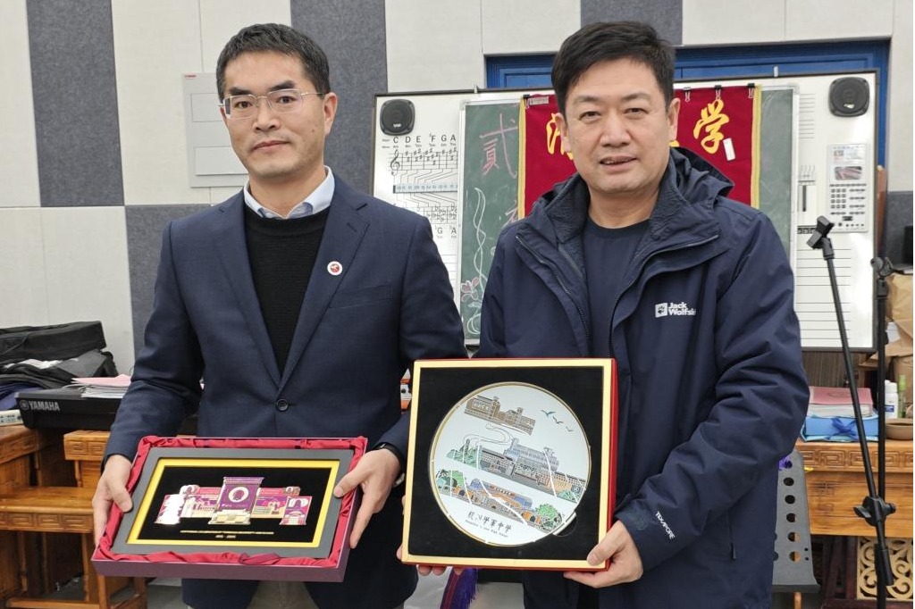 澳门博彩在线主管德育的白雪峰副校长与浙江省杭州学军中学张立东副校长交换校牌